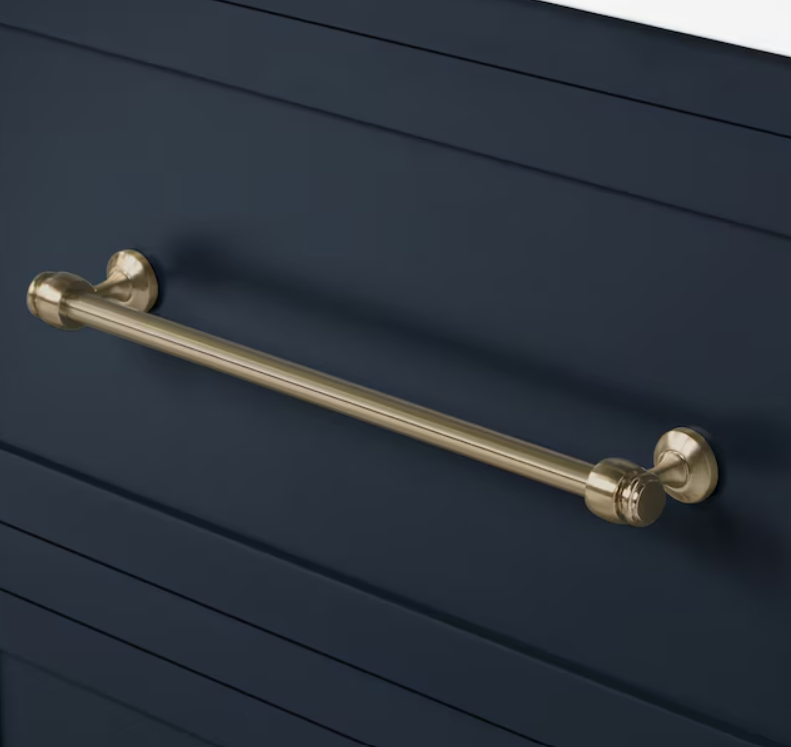 The Allen & Roth LWSS60VB 60" Midnight Blue Vanity with Top & Bowl marries timeless elegance with thoughtful design. Its eye-catching midnight-blue finish sets a bold tone, while the crisp white engineered stone countertop and matching backsplash echo modern refinement. Equipped with dual rectangular undermount sinks and pre-drilled for 8″ widespread faucets, it delivers both functionality and style. Built on a sturdy solid‑wood frame and outfitted with soft‑close drawers and doors, this vanity offers a smooth, upscale user experience. Complete your bathroom renovation with this striking centerpiece designed to endure.