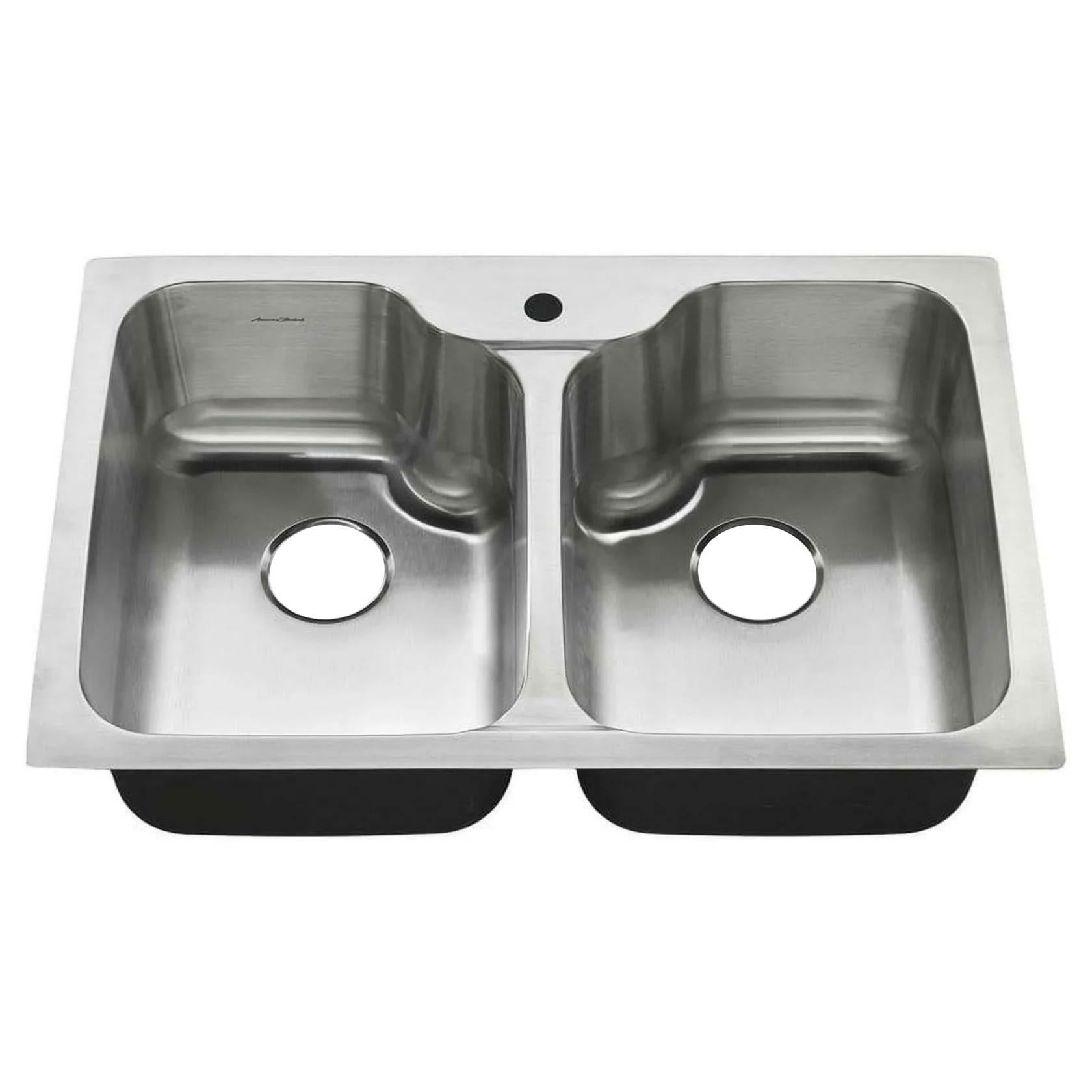 American Standard 20DB.332211.075 Tulsa 33 x 22 Inch Stainless Steel Drop-In Undermount Double-Bowl Kitchen Sink (No strainers included)