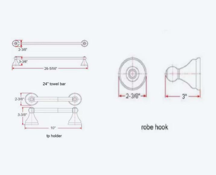 Design House 3 -Piece Allante Bathroom Hardware Set Polished Chrome Towel Bar, Toilet Paper Holder, Robe Hook