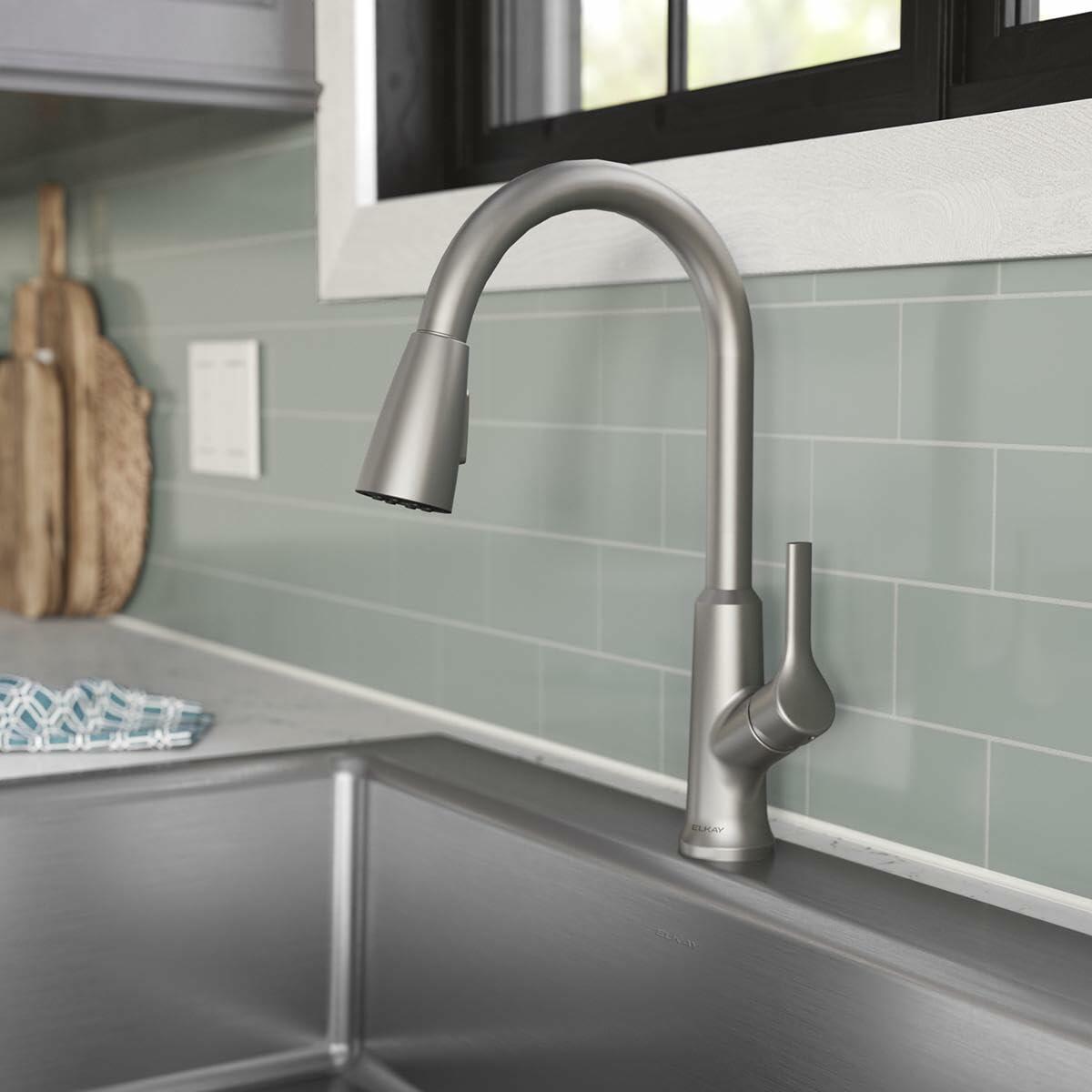 The Elkay LK1410 Everyday Single Hole Kitchen Faucet in Lustrous Steel offers a sleek, modern design combined with everyday functionality. Featuring a convenient pull-down spray head with dual spray modes and a forward-only lever handle that prevents backsplash interference, this faucet is ideal for compact or contemporary kitchen spaces. The 360° swivel spout provides full sink coverage, while the ceramic disc cartridge ensures smooth, drip-free performance. With its durable brass construction and available in 3 finish options such as Chrome, Matte Black and Lustrous Steel, the LK1410 delivers both style and reliability for daily kitchen tasks. Choose yours now!