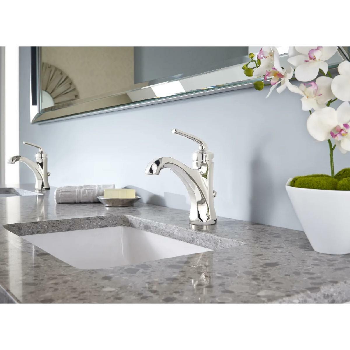 The Pfister Arterra LG42-DE0C Single-Handle Bathroom Faucet combines classic lines with a modern twist, complementing both traditional and contemporary bathrooms. Its 1.2 GPM flow rate meets EPA WaterSense standards, helping reduce water use by up to 30% while saving on utility bills. Built with all-metal construction, a Pforever Seal™ ceramic disc valve, and a metal pop-up drain, it offers durability and a lifetime limited warranty for lasting performance.